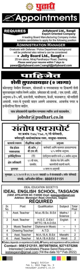 Sangli Pudhari Jobs Updates 01/02/22 Posted bymrisegroup1 Feb 20221 Feb 2022Posted inNew, news, Sangli JobsTags:news, Sangli Jobs Subscribe our Telegram Channel and get daily job updates | Join Telegram Now Share this: Share on Telegram (Opens in new window) Telegram Share on WhatsApp (Opens in new window) WhatsApp Share on Facebook (Opens in new window) Facebook Share on LinkedIn (Opens in new window) LinkedIn Share on X (Opens in new window) X Email a link to a friend (Opens in new window) Email Like Loading... Related